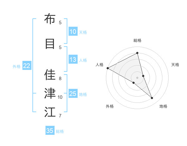 布目 佳津江さんを姓名の画数から五運を鑑定