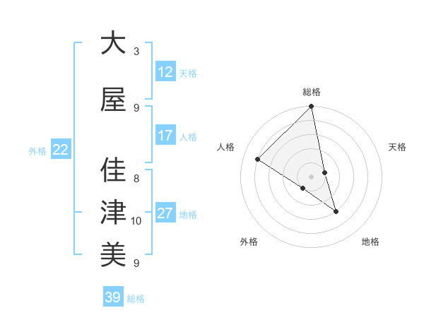 大屋 佳津美さんを姓名の画数から五運を鑑定