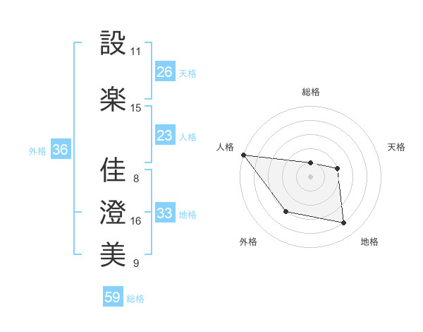 設楽 佳澄美さんを姓名の画数から五運を鑑定