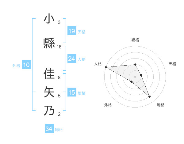 小縣 佳矢乃さんを姓名の画数から五運を鑑定
