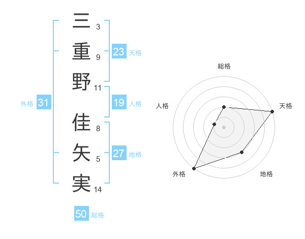 三重野 佳矢実さんの総格は50画の2点