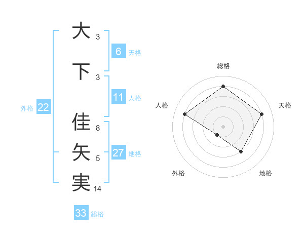 大下 佳矢実さんの総格は33画の4点!