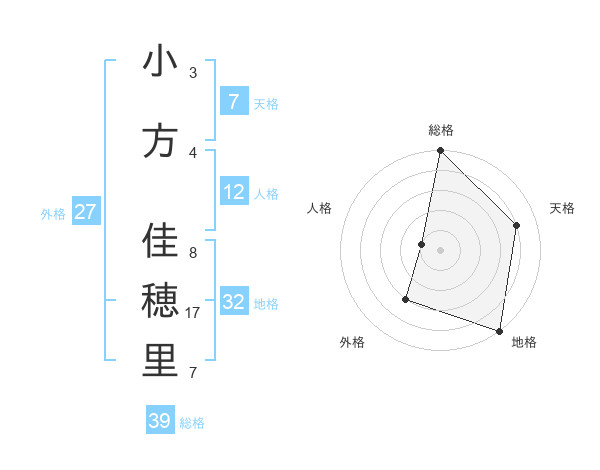 小方 佳穂里さんを姓名の画数から五運を鑑定