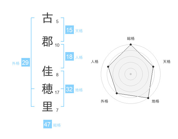 古郡 佳穂里さんを姓名の画数から五運を鑑定