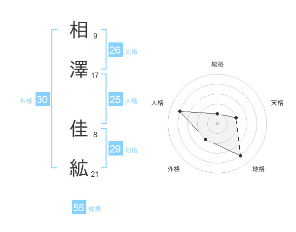 相澤 佳絋さんの総格は55画の1点!