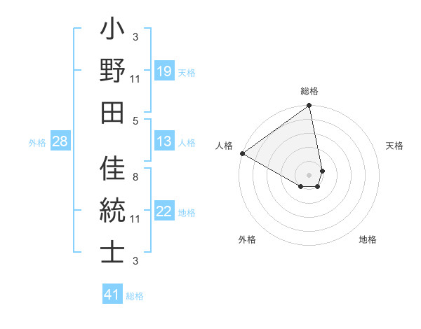 小野田 佳統士さんの総格は41画の5点!