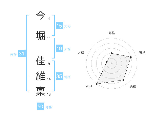 今堀 佳維稟さんの総格は50画の2点!