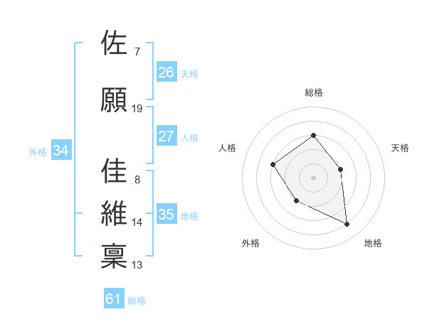 佐願 佳維稟さんの総格は61画の3点!