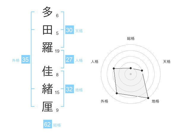 多田羅 佳緒厘さんを姓名の画数から五運を鑑定