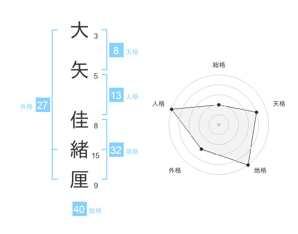 大矢 佳緒厘さんを姓名の画数から五運を鑑定