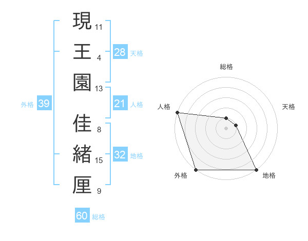 現王園 佳緒厘さんの外格は39画の5点!