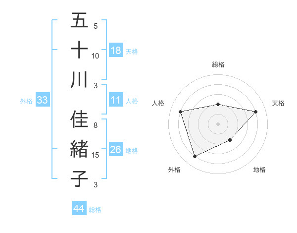五十川 佳緒子さんを姓名の画数から五運を鑑定