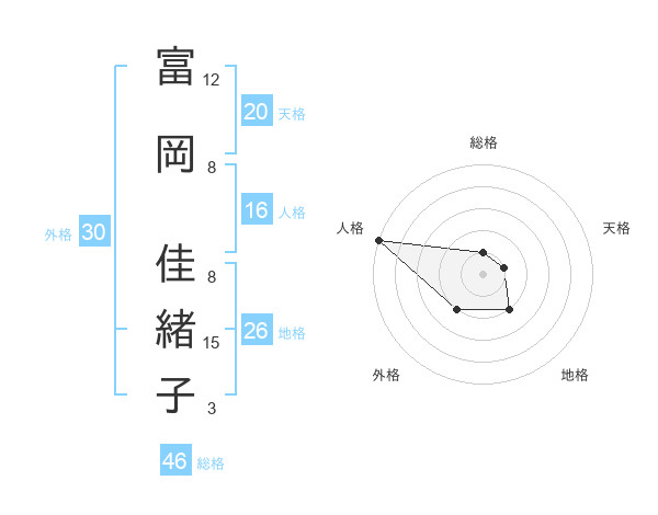富岡 佳緒子さんを姓名の画数から五運を鑑定