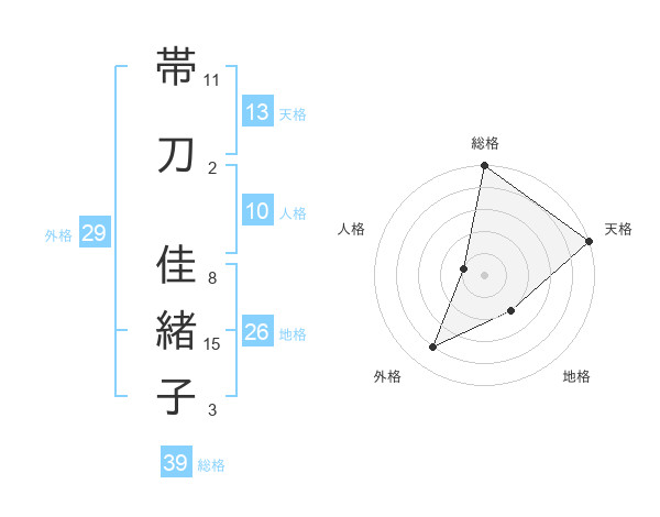 帯刀 佳緒子さんを姓名の画数から五運を鑑定