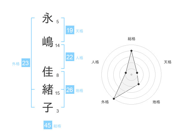 永嶋 佳緒子さんを姓名の画数から五運を鑑定