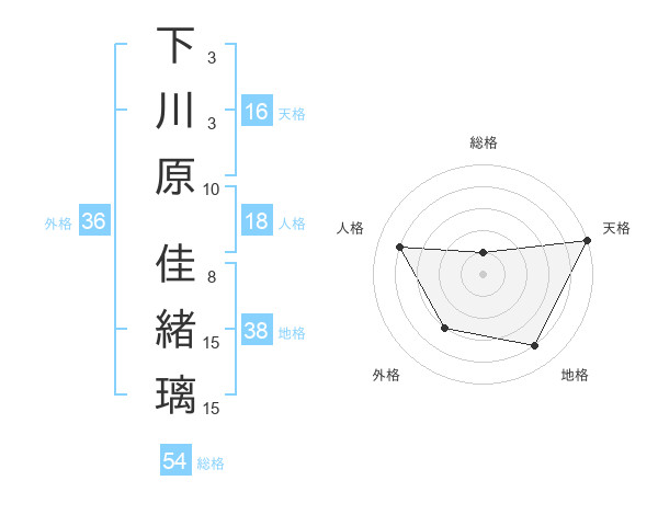 下川原 佳緒璃さんの天格は16画の5点!