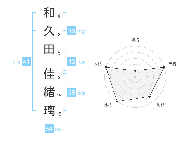 和久田 佳緒璃さんを姓名の画数から五運を鑑定