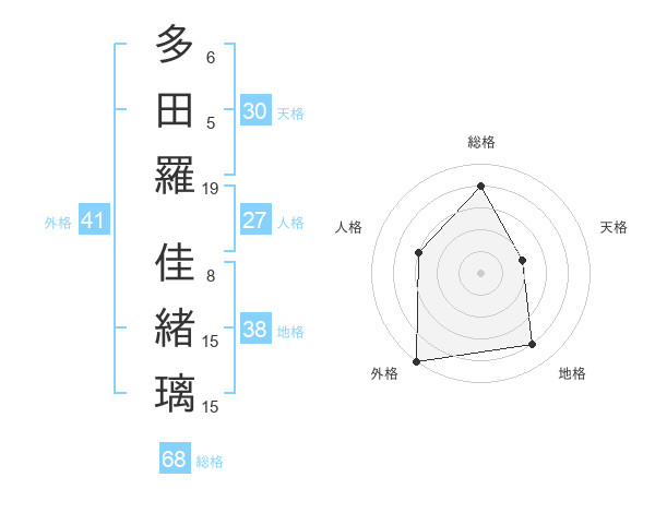 多田羅 佳緒璃さんを姓名の画数から五運を鑑定