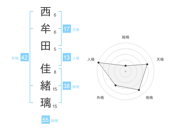 西牟田 佳緒璃さんを姓名の画数から五運を鑑定