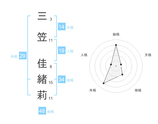 三笠 佳緒莉さんを姓名の画数から五運を鑑定