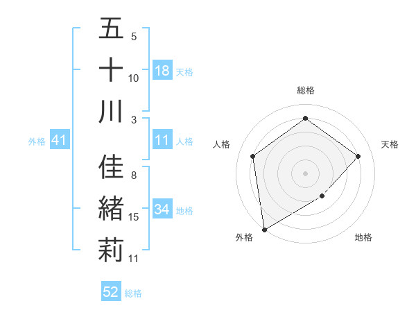 五十川 佳緒莉さんの総格は52画の4点!