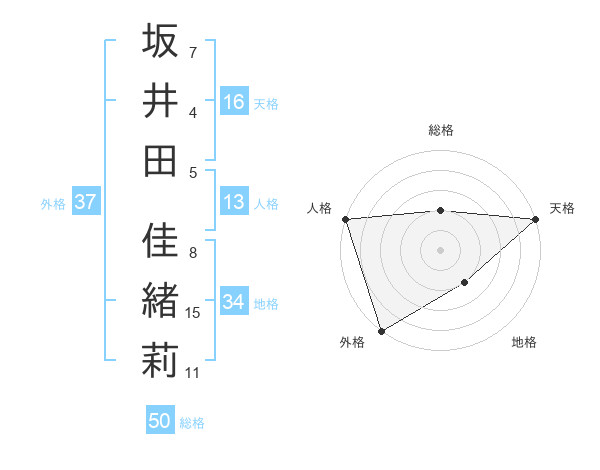 坂井田 佳緒莉さんを姓名の画数から五運を鑑定