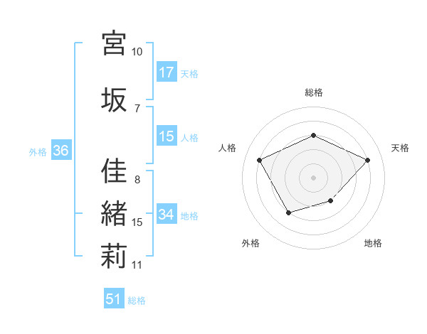 宮坂 佳緒莉さんの総格は51画の3点!