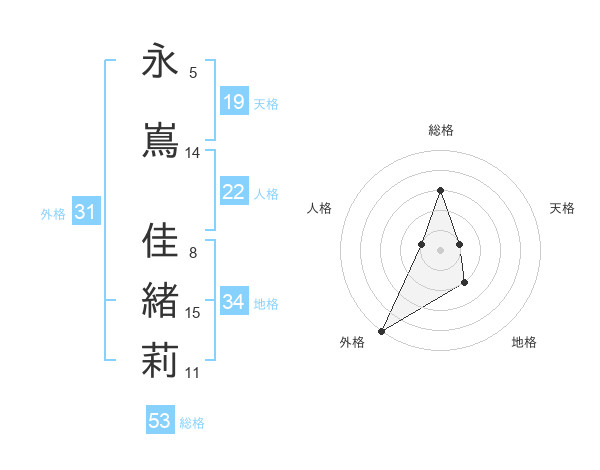 永嶌 佳緒莉さんの総格は53画の3点!