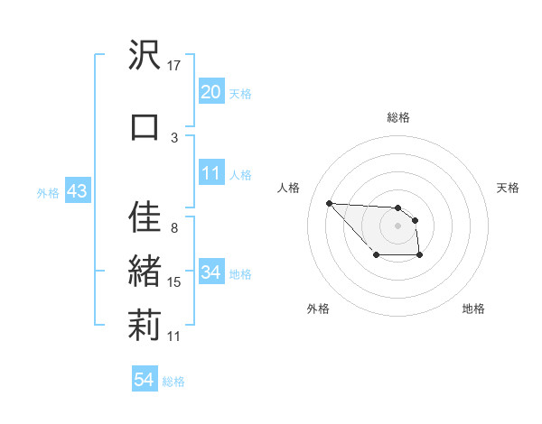 沢口 佳緒莉さんを姓名の画数から五運を鑑定