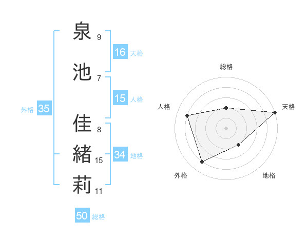 泉池 佳緒莉さんを姓名の画数から五運を鑑定