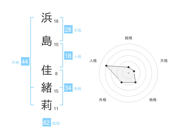 浜島 佳緒莉さんを姓名の画数から五運を鑑定