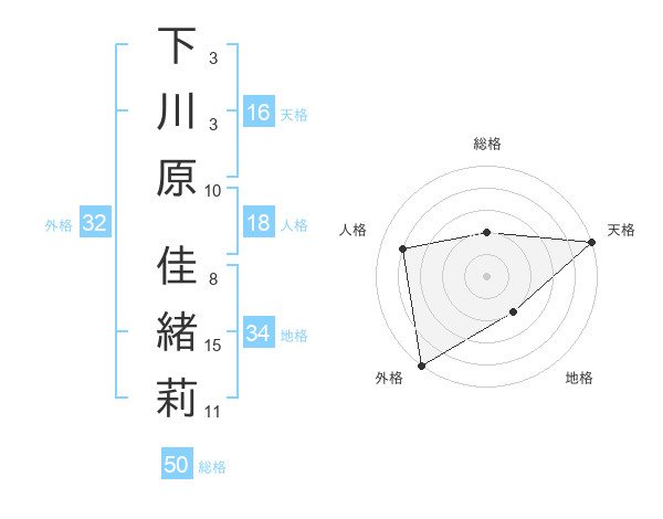 下川原 佳緒莉さんを姓名の画数から五運を鑑定