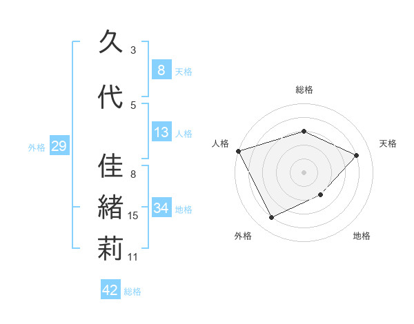 久代 佳緒莉さんを姓名の画数から五運を鑑定