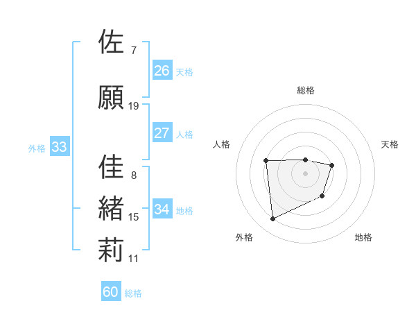 佐願 佳緒莉さんを姓名の画数から五運を鑑定