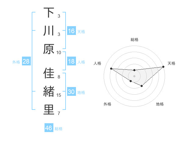 下川原 佳緒里さんを姓名の画数から五運を鑑定