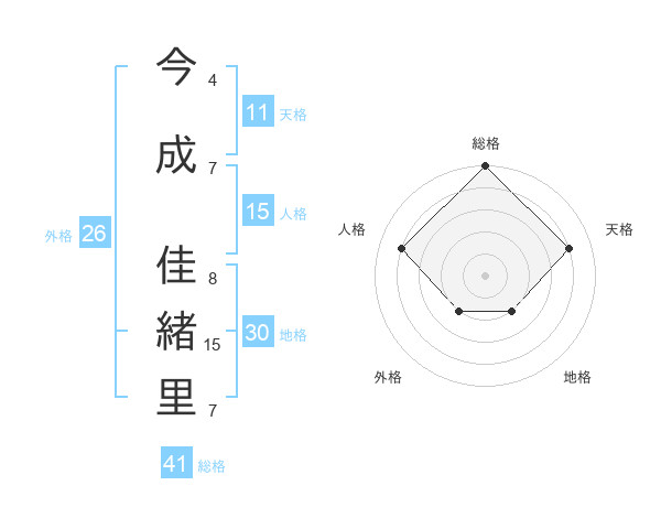 今成 佳緒里さんを姓名の画数から五運を鑑定