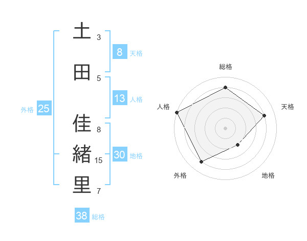 土田 佳緒里さんの総格は38画の4点!