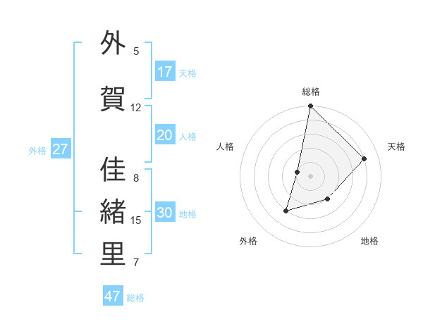 外賀 佳緒里さんを姓名の画数から五運を鑑定