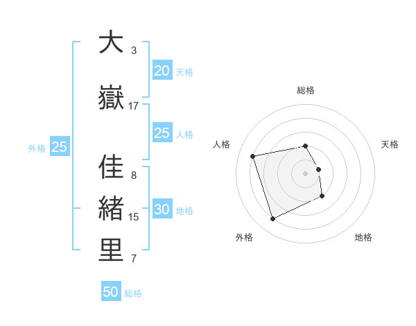 大嶽 佳緒里さんを姓名の画数から五運を鑑定