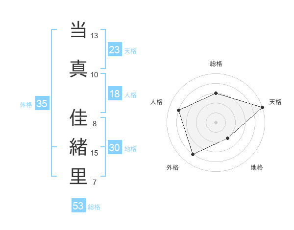 当真 佳緒里さんの総格は53画の3点