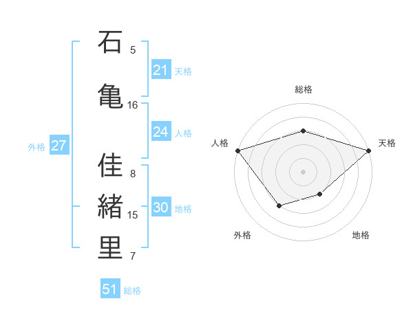 石亀 佳緒里さんを姓名の画数から五運を鑑定