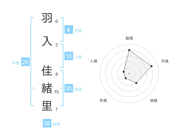 羽入 佳緒里さんを姓名の画数から五運を鑑定