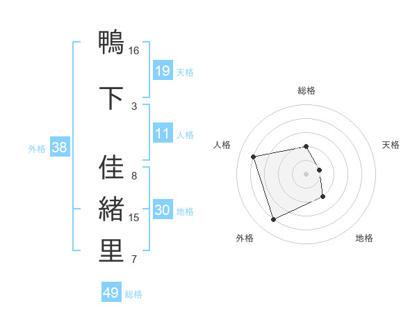 鴨下 佳緒里さんの総格は49画の2点!