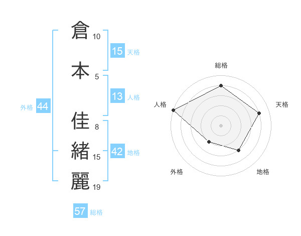 倉本 佳緒麗さんの総格は57画の4点!