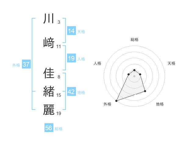 川﨑 佳緒麗さんを姓名の画数から五運を鑑定