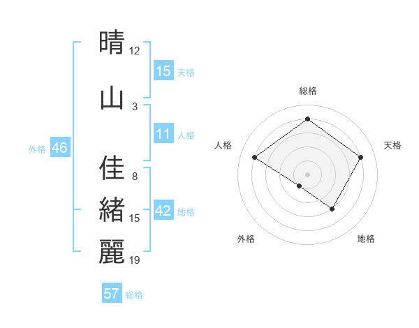 晴山 佳緒麗さんを姓名の画数から五運を鑑定