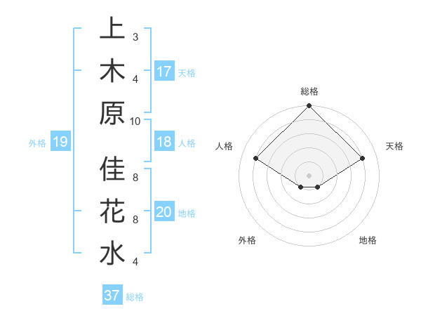 上木原 佳花水さんを姓名の画数から五運を鑑定