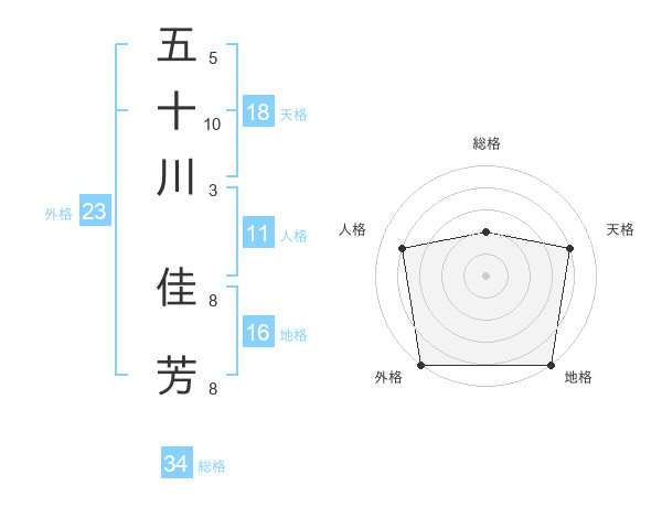 五十川 佳芳さんの総格は34画の2点!