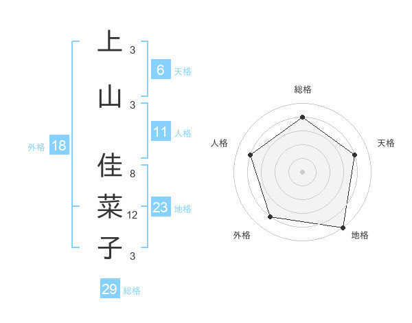 上山 佳菜子さんの総格は29画の4点