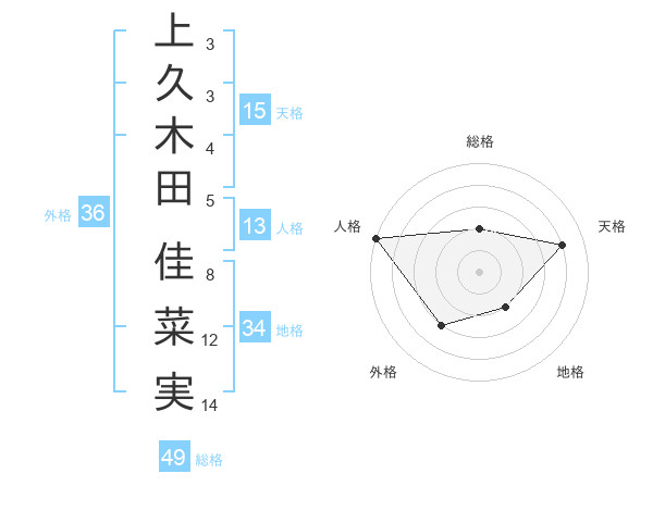 上久木田 佳菜実さんの天格は15画の4点!